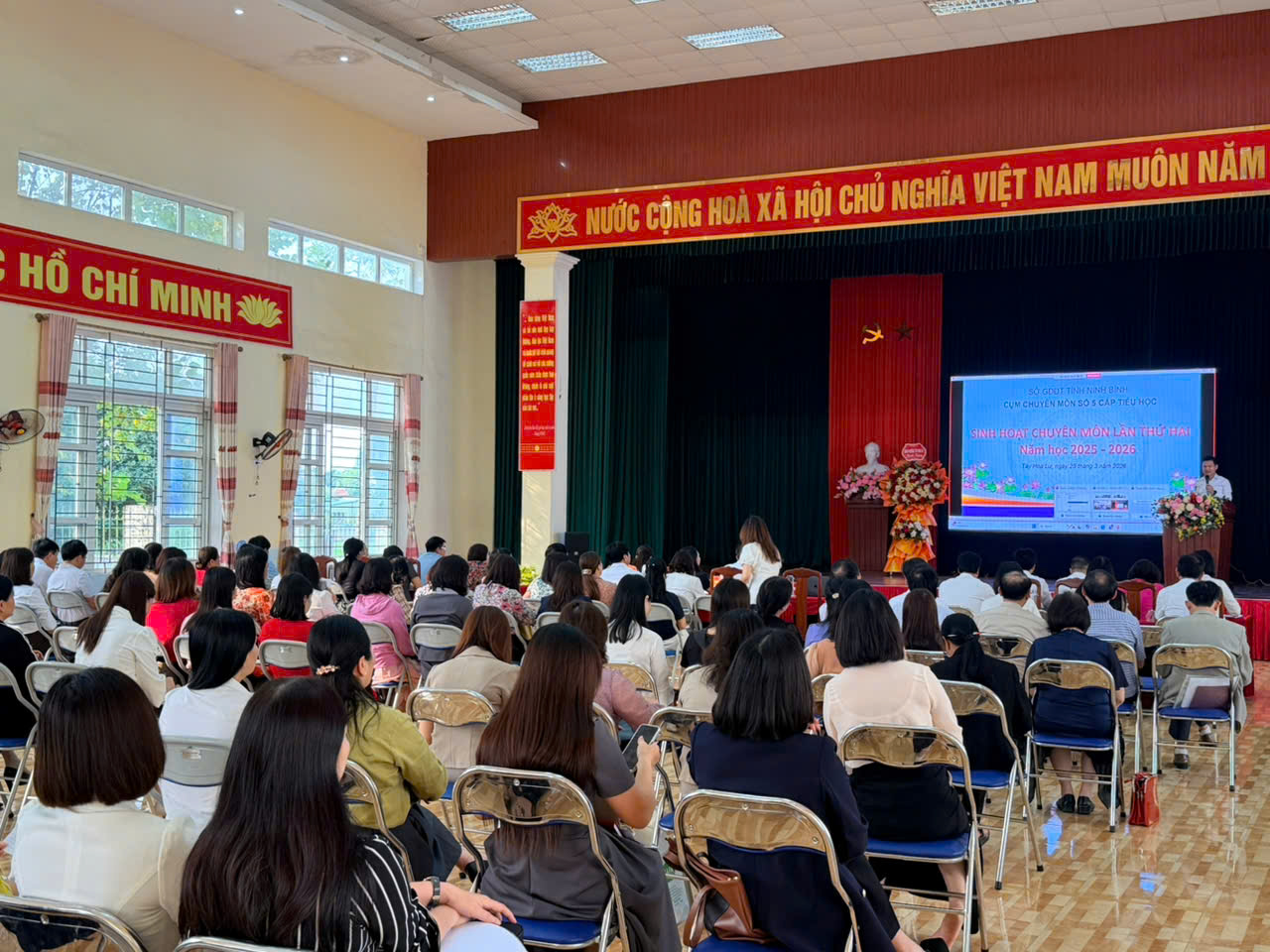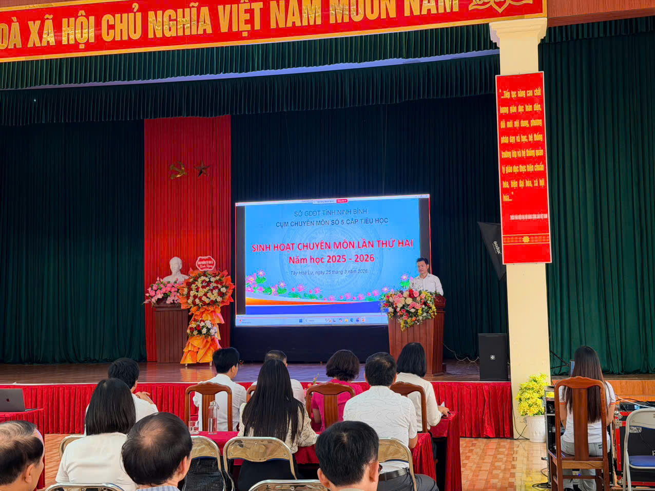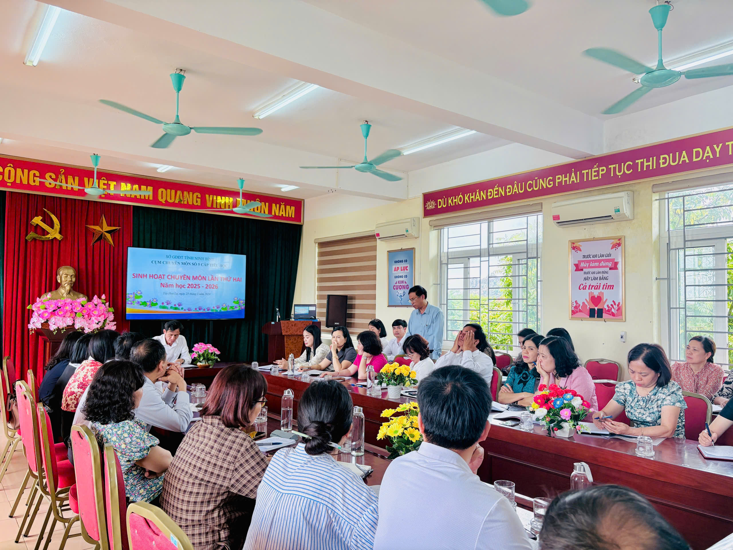 Thực hiện các văn bản hướng dẫn của Sở GD&ĐT tỉnh Ninh Bình và Kế hoạch số 03/KH-CCM5, ngày 25/3/2026, Cụm chuyên môn số 5 cấp Tiểu học đã long trọng tổ chức buổi sinh hoạt chuyên môn lần thứ hai. Về dự và chỉ đạo buổi sinh hoạt có các đồng chí là lãnh đạo Phòng Giáo dục Tiểu học (Sở GD&ĐT tỉnh Ninh Bình), các đồng chí lãnh đạo địa phương, cùng toàn thể cán bộ quản lý cốt cán các cụm chuyên môn trong tỉnh, giáo viên cốt cán thuộc Cụm chuyên môn số 5. Buổi sinh hoạt chuyên môn lần này tập trung vào chủ đề mang tính thời sự và thực tiễn cao: “Tăng cường thực hành trong dạy học môn Công nghệ và Tổ chức hoạt động trải nghiệm nhằm phát triển năng lực, phẩm chất cho học sinh”.