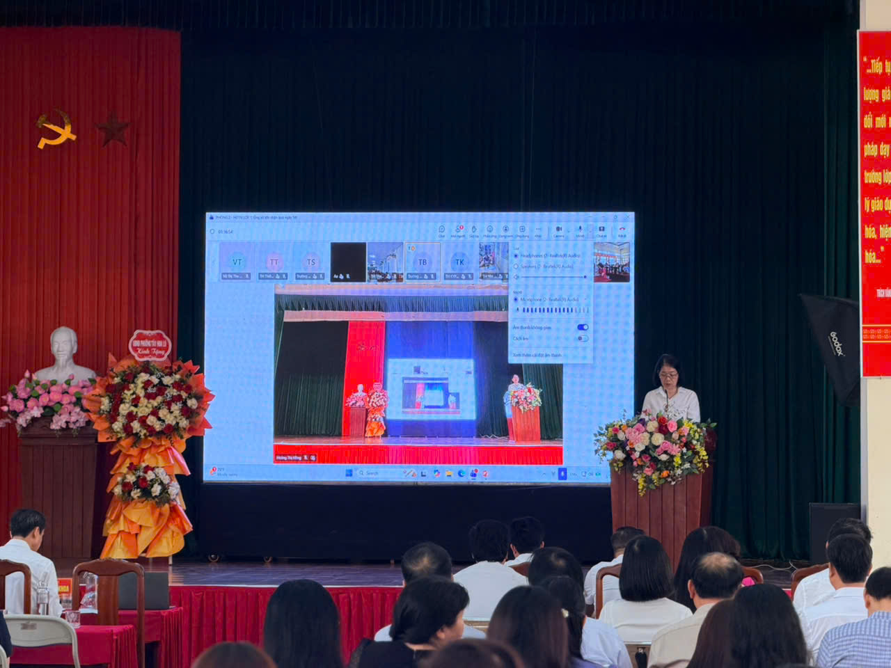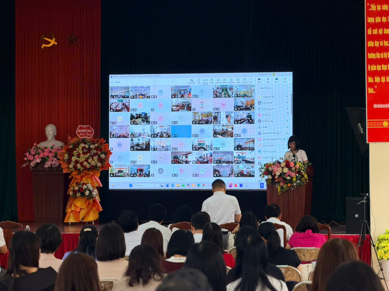 Điểm nhấn của buổi sinh hoạt là nội dung dự giờ hai tiết dạy minh họa được chuẩn bị công phu, sáng tạo các thầy cô dự trực tiếp và trực tuyến tại điểm cầu trung tâm và 48 điểm cầu tại các trường.
