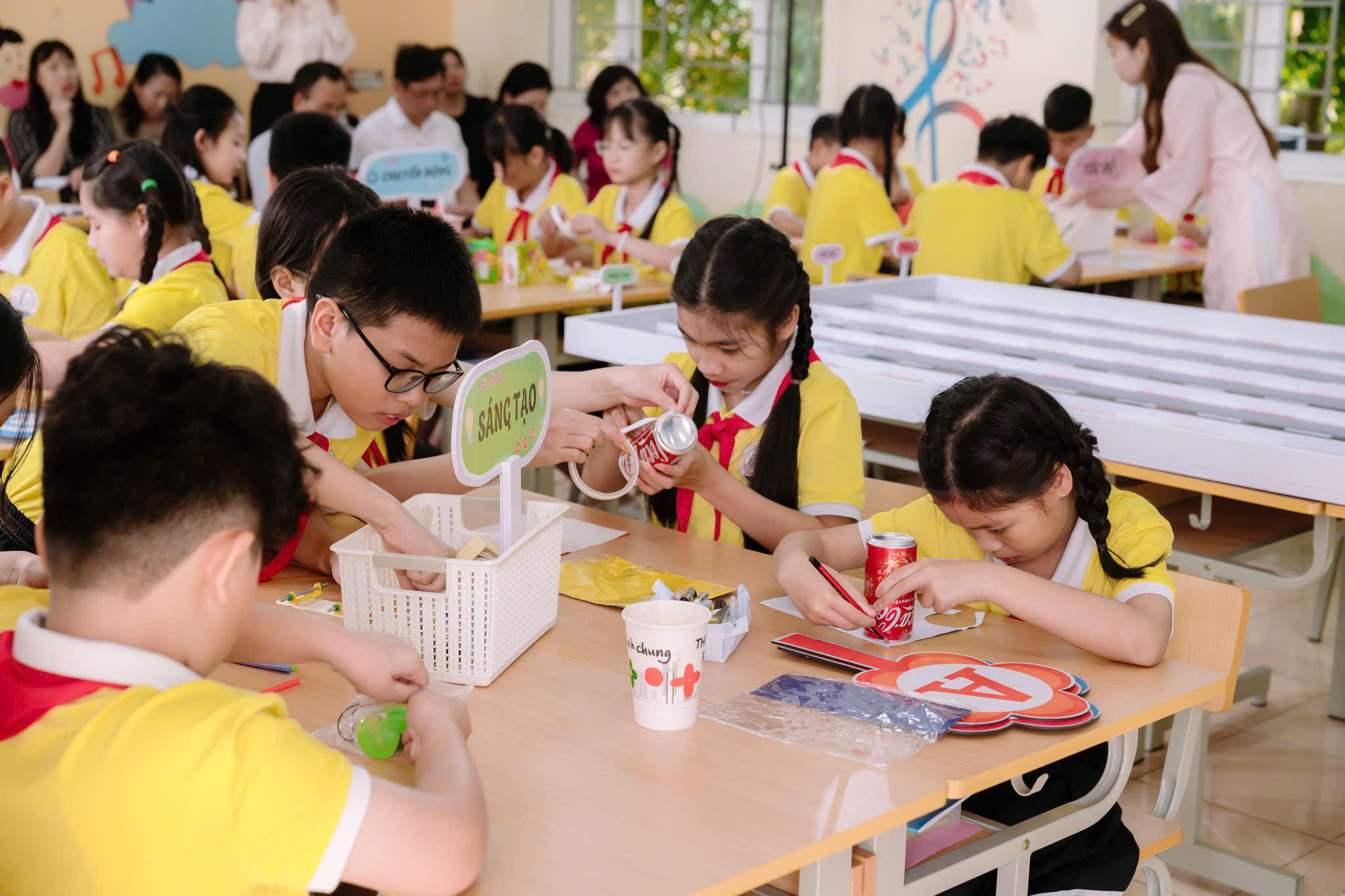 Sau 02 tiết dạy, các đại biểu quan sát hoạt động giữa giờ của trường Tiểu cj Ninh Giang và trao đổi phương pháp, hình thức tổ chức dạy học môn Công nghệ và Hoạt động trải nghiệm.