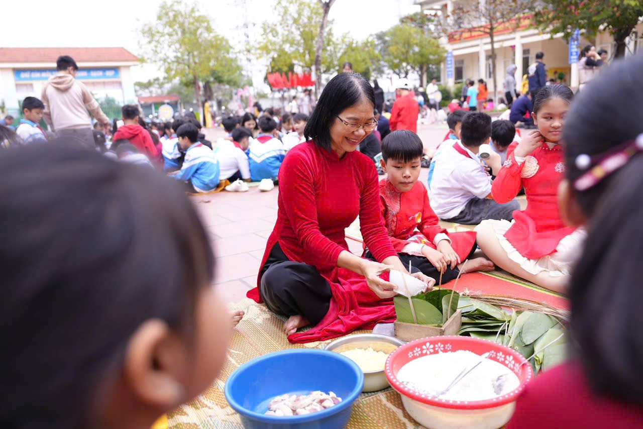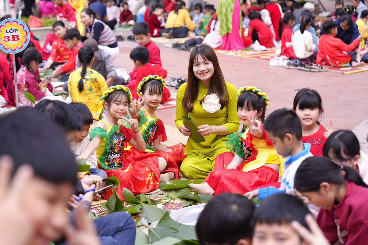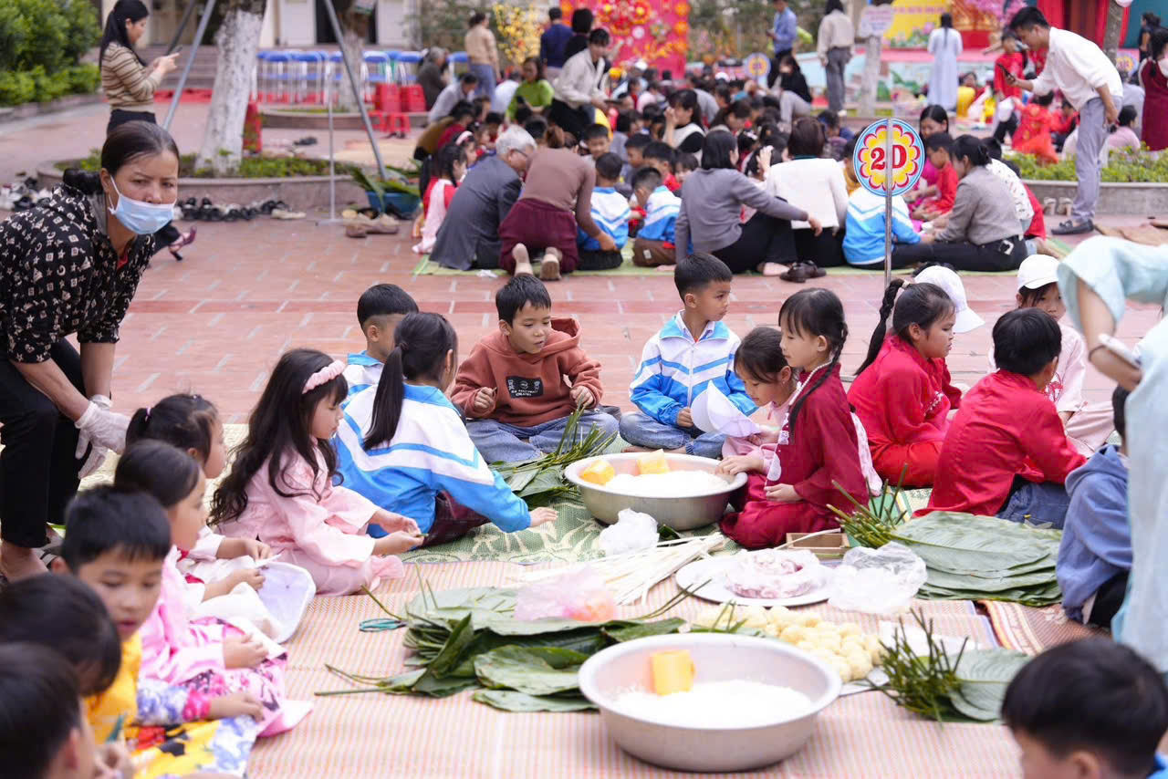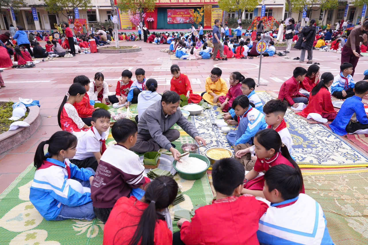 Những ngày cuối năm, khi cơn gió lạnh của mùa đông dần nhường chỗ cho cái nắng ấm áp của nàng xuân, sân trường Tiểu học Ninh Giang lại rộn ràng hơn bao giờ hết với tiếng cười vang và mùi thơm nồng nàn của lá dong, gạo nếp, đỗ xanh và thịt lợn.