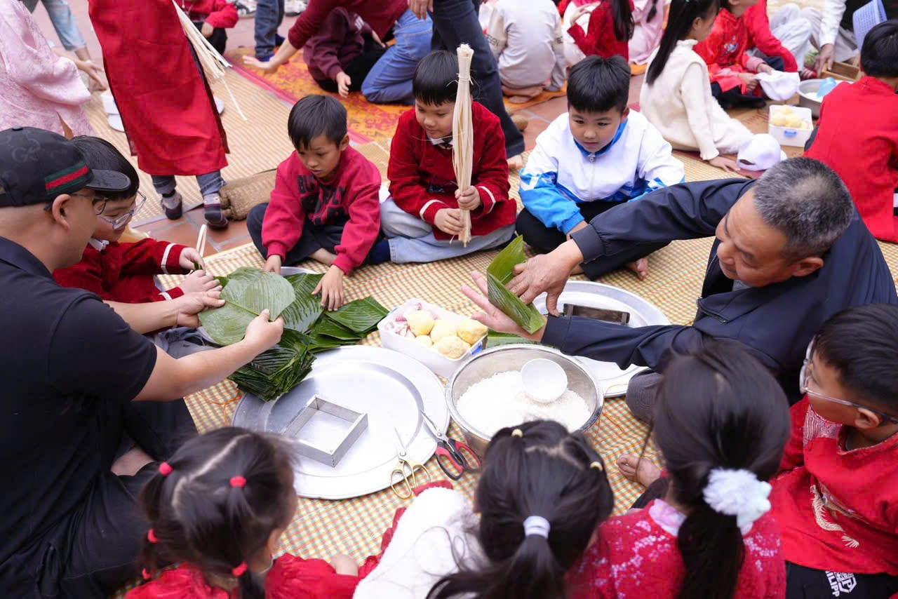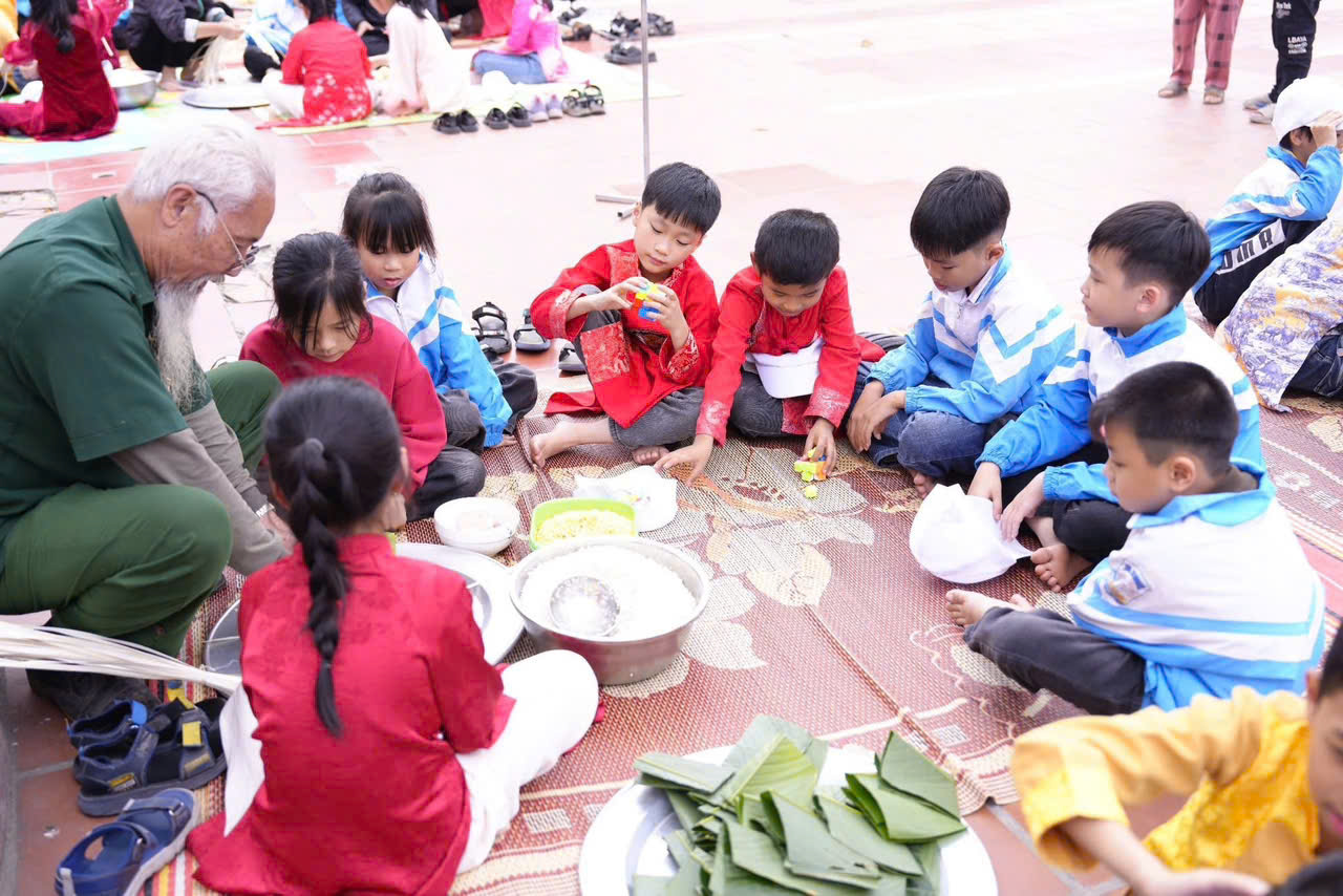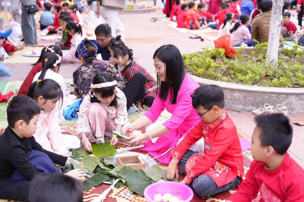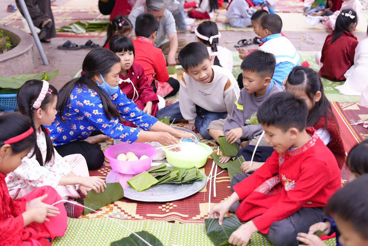 Những ngày cuối năm, khi cơn gió lạnh của mùa đông dần nhường chỗ cho cái nắng ấm áp của nàng xuân, sân trường Tiểu học Ninh Giang lại rộn ràng hơn bao giờ hết với tiếng cười vang và mùi thơm nồng nàn của lá dong, gạo nếp, đỗ xanh và thịt lợn.