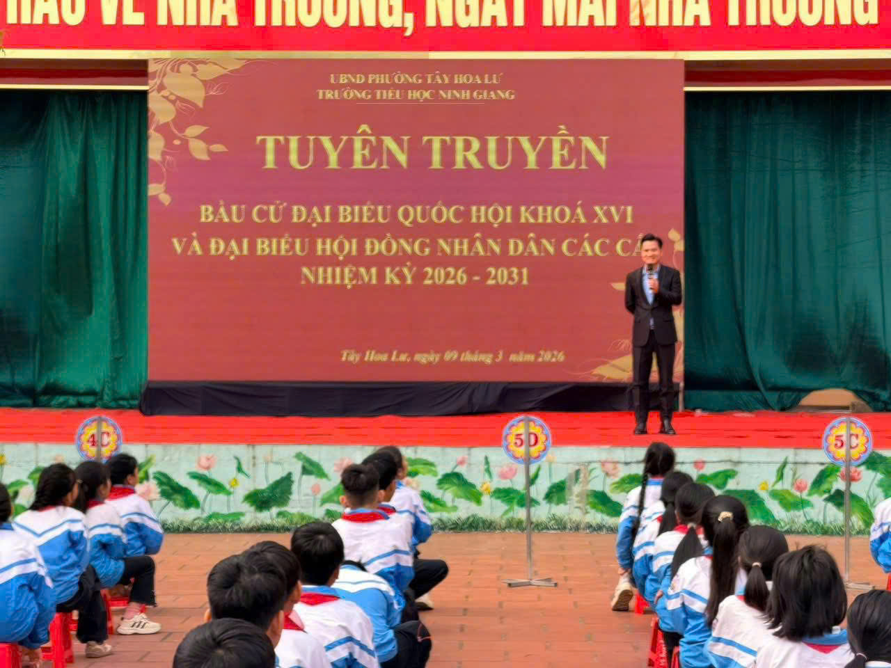 Sáng ngày 09/3/2026, trường Tiểu học Ninh Giang tổ chức hoạt động tuyên truyền bầu cử Đại biểu Quốc hội khóa XVI và HĐND các cấp nhiệm kỳ 2026-2031. Mỗi thầy cô và học sinh nhà trường quyết tâm trở thành những tuyên truyền viên tích cực, hướng tới ngày hội toàn dân đầy ý nghĩa!